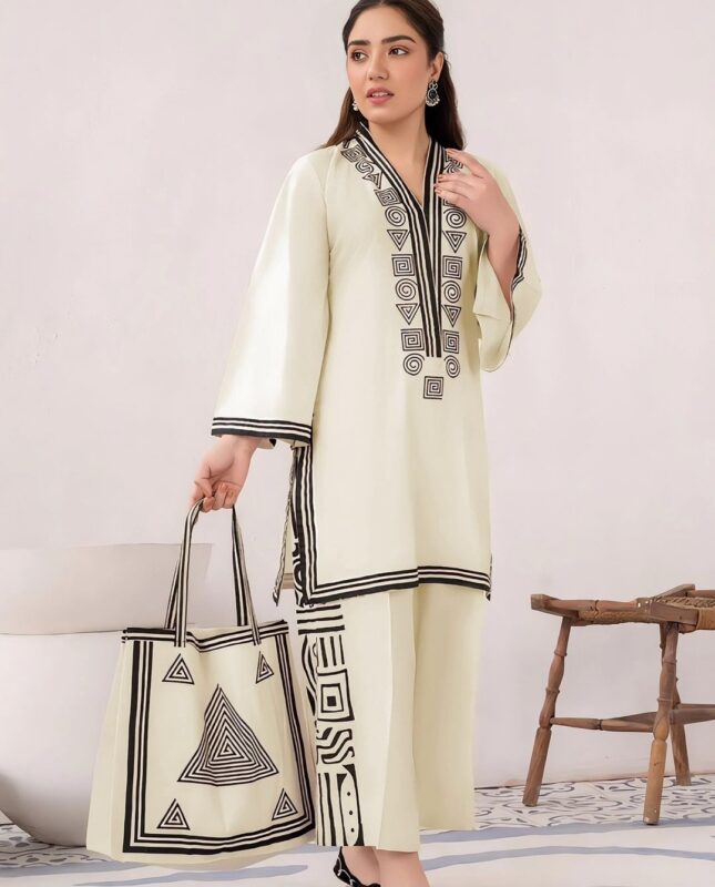 White Printed Coord set with bag