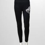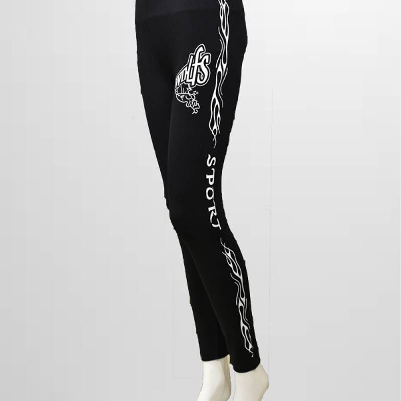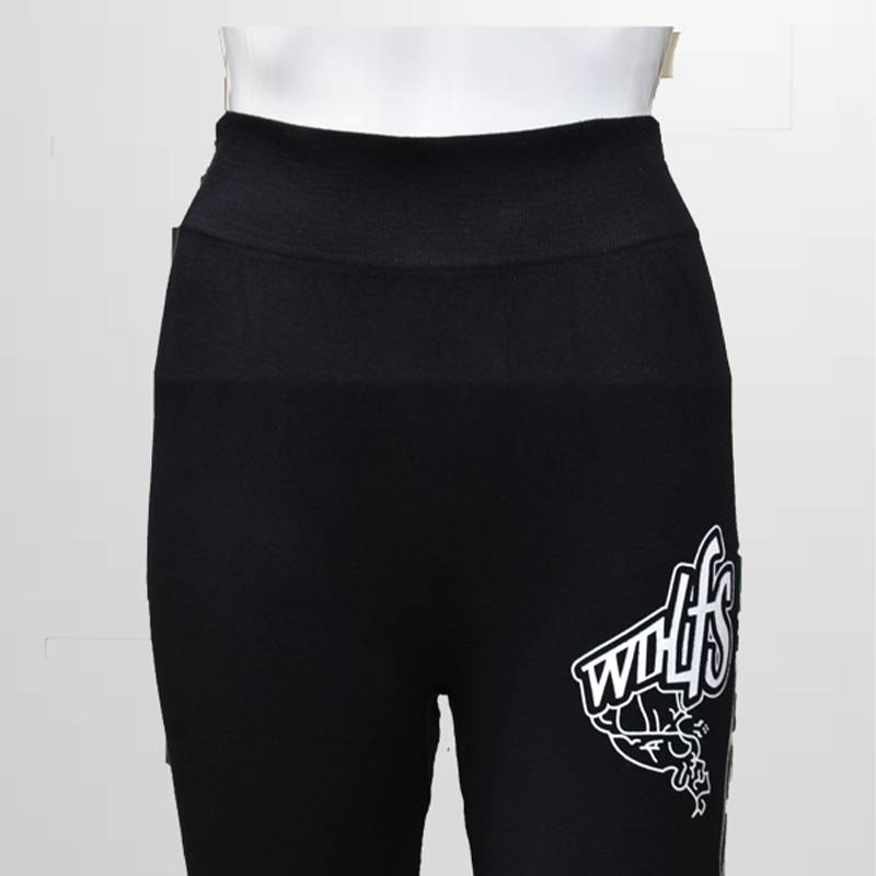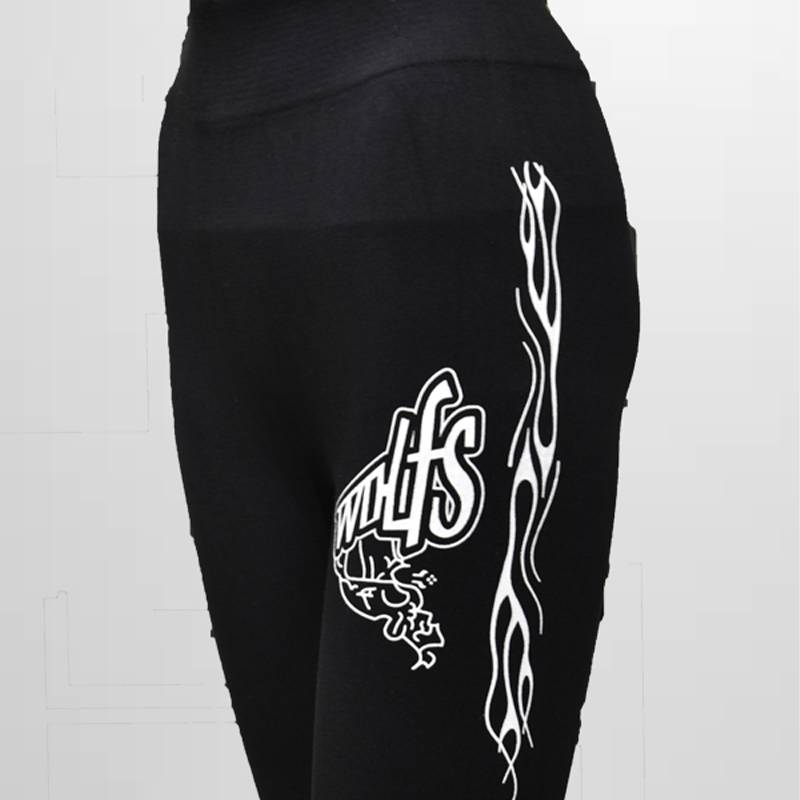 Black Training Leggings cross band high waist with wolfs white print (09)
