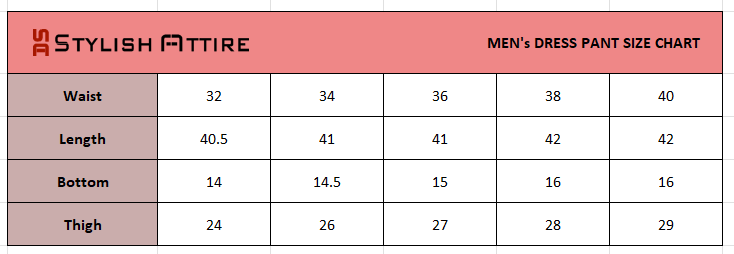 Men's Dress Pants Size Chart