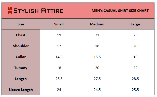 Men's Casual Shirt Size Chart