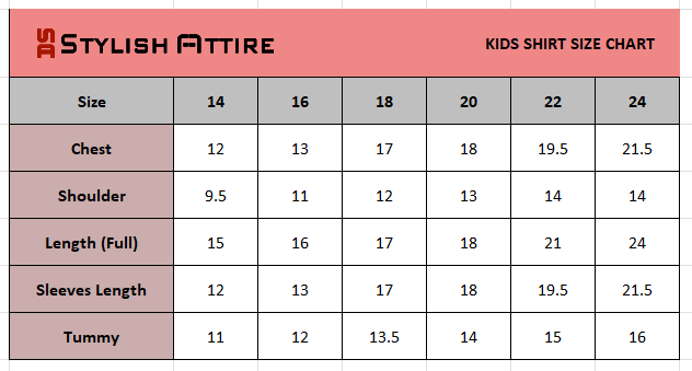 Kids Shirts Size Chart