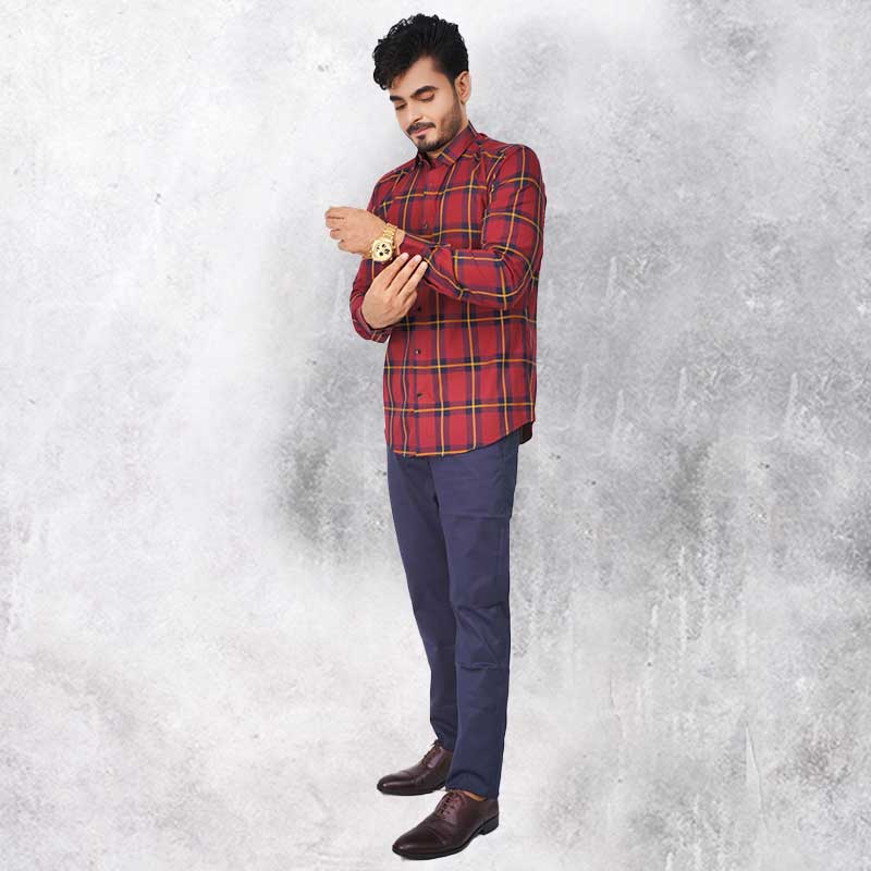 Maroon and Yellow Stripes Box Check Italian Series Men’s Casual Shirt CS 04