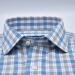 Men’s Formal Light Blue & Grey small Check cotton Shirt deluxe Series FS 40