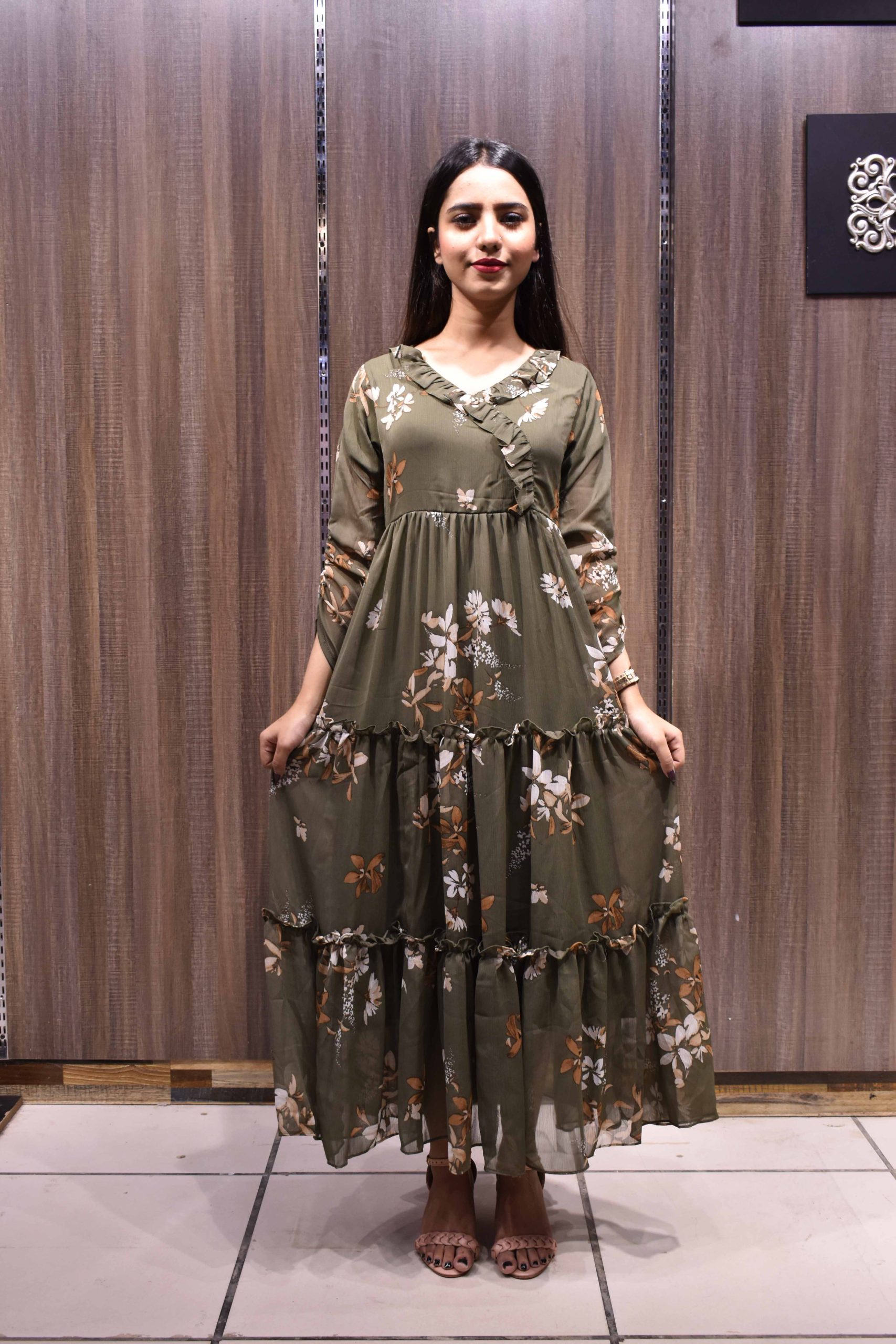 victoria- Mid-Green Printed Maxi Dress (044)