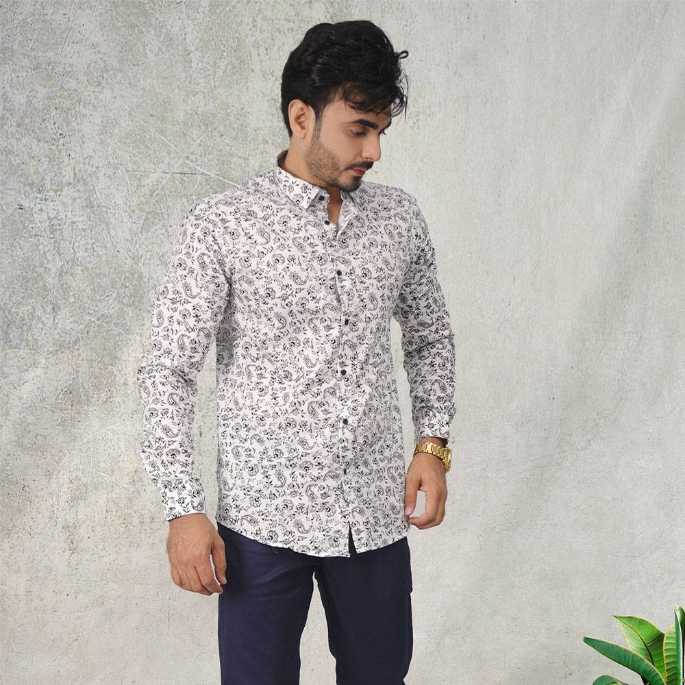 White with Black print Italian Series Men’s Casual Shirt CS 09